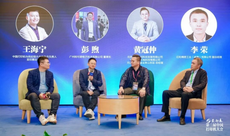 值得关注的是,本届中国打印机大会的圆桌论坛环节,由王海宁主持,邀请了邀请了广州阿可诺电子技术有限公司董事长彭煦、正办公设备业务山东区总经理黄冠仲,亿和精密工业(威海)有限公司副总经理李荣等嘉宾,共同围绕“AI技术与打印机的融合,会怎么样推动行业进步”这一主题展开深入讨论。