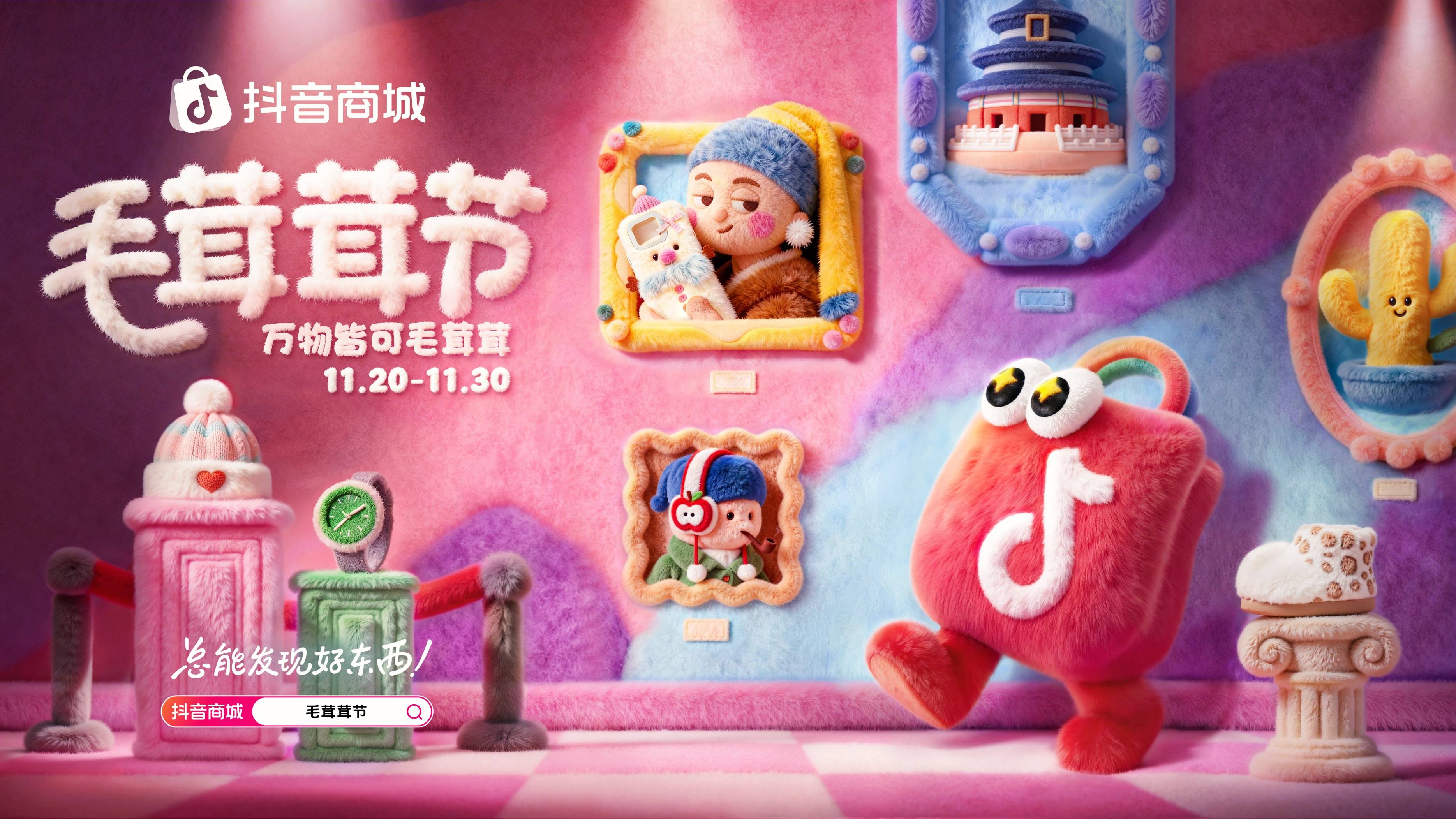 紧贴这股温暖消费潮流,11月20日起,抖音商城推出「毛茸茸节」品类活动,旨在契合年轻人“上头”热点,帮助玩偶、毛茸家居服、新奇文创周边、毛茸外套、毛茸鞋子等“毛茸茸”相关商品,借助抖音商城内容营销带来生意转化的闭环价值,以热点成趋势、以趋势带消费,加速好物曝光与转化,帮助商家抢滩“可爱经济”与冬季“治愈经济”新风口。