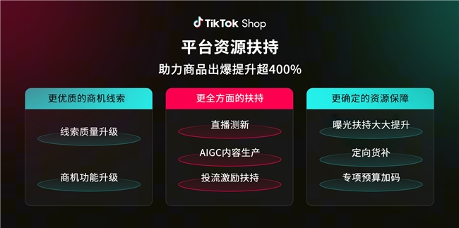 此外,TikTok Shop也将为全托管女装行业商家带来全方位扶持,商家不仅能享受更优质的商机线索,还将获得直播测新AIGC内容生产投流激励等资源加持,以及定向货补专项预算加码等保障,助力商品出爆提升超400%